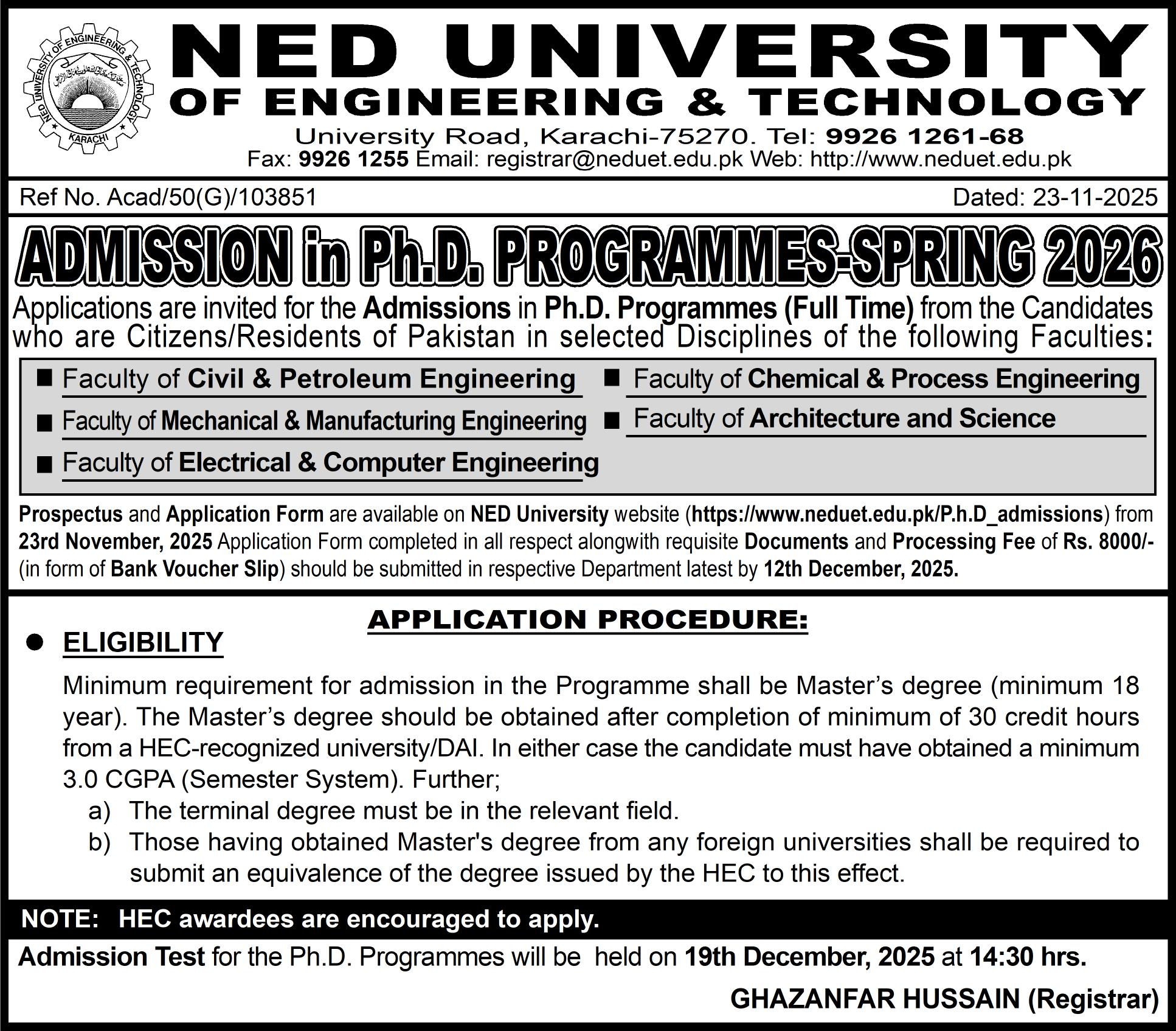 Admission Notice for Master Programmes 2026 Spring 2026 Entrance Test Result & Call for Interview List of Eligible Candidates for Entrance Test Instruction for Entry Test Advertisement Eligibility Prospectus Apply Online Admission Notice for Ph.D. Programmes 2026 Spring 2026 Procedure Advertisement Prospectus Apply Online