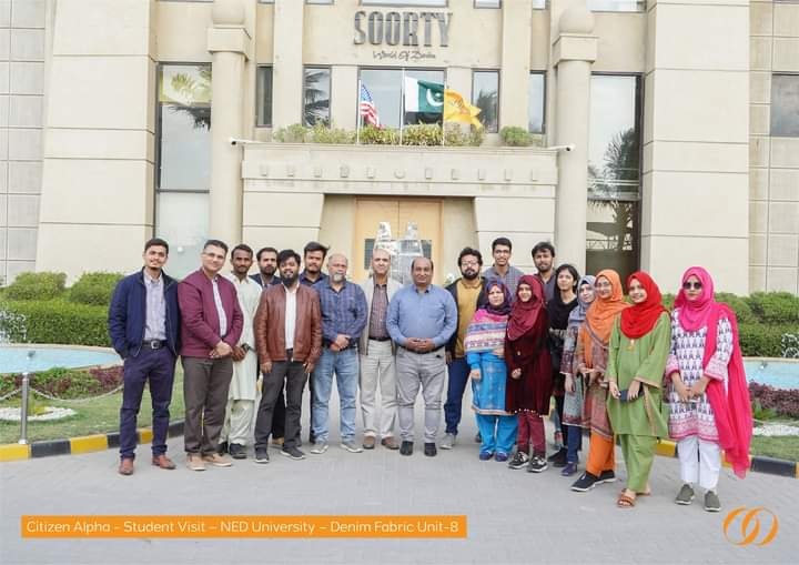 The Department of Environmental Engineering arranged an industrial field visit to Soorty Denim Mills Private Limited, Fabric Unit 8, Karachi for the postgraduate students on January 11, 2023. Dr. Mehmood Ali and Dr. Sadia Khan accompanied the students during the visit. There was an interactive session with the management which was followed by a visit to the manufacturing plant including their Effluent treatment plant for wastewater management and sustainable use of resources and materials for the production of quality products. They inform students about their practices for reduced ecological and carbon footprint. They demonstrate their responsible production practices which have great social and environmental impacts. |