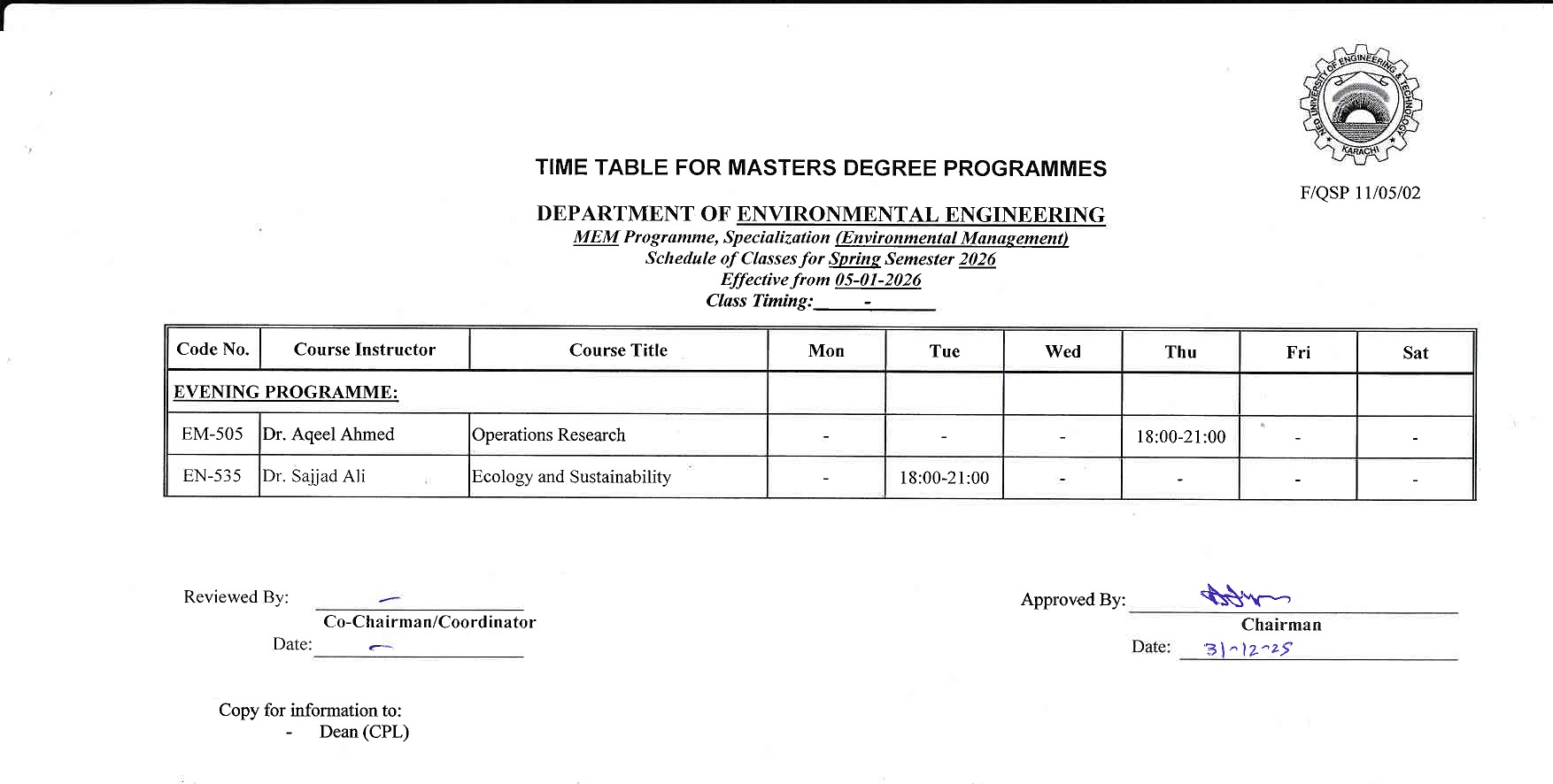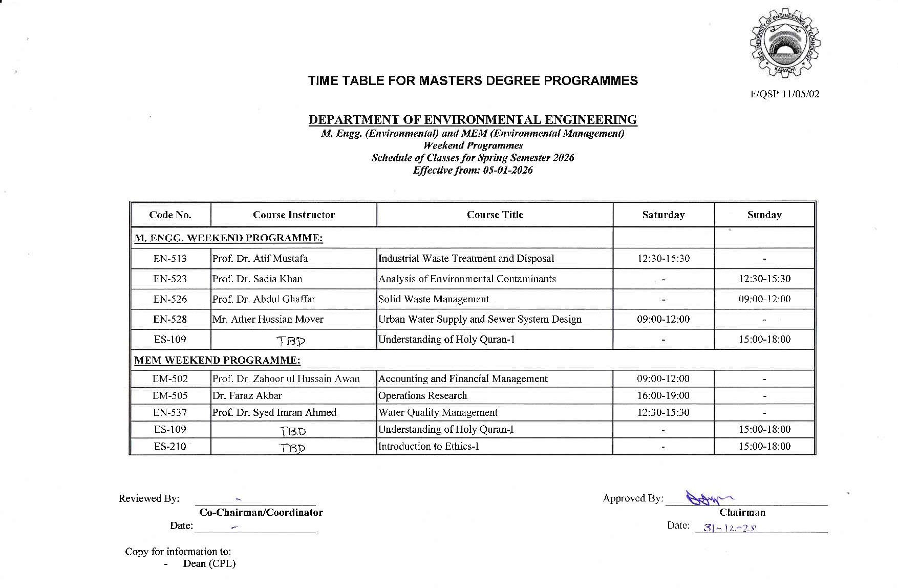 | Academic Council (AC) | Prof. Dr. Atif Mustafa |